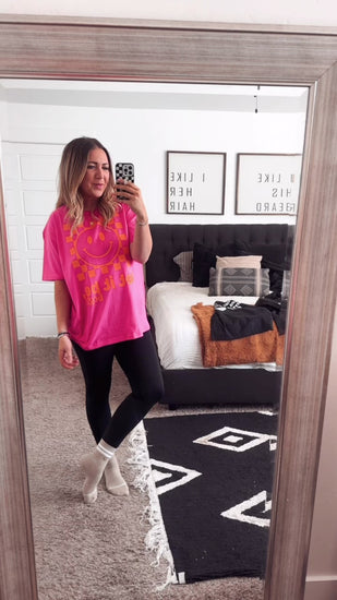 Our brand new 2026 tee comes in hot pink/orange AND black/white. It is SO dang cute!